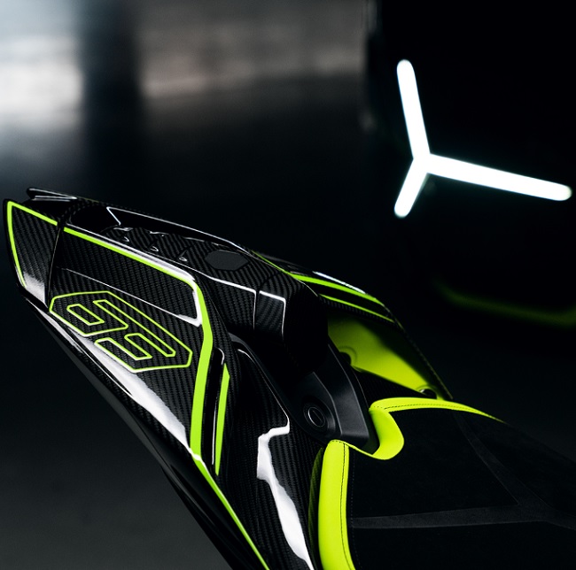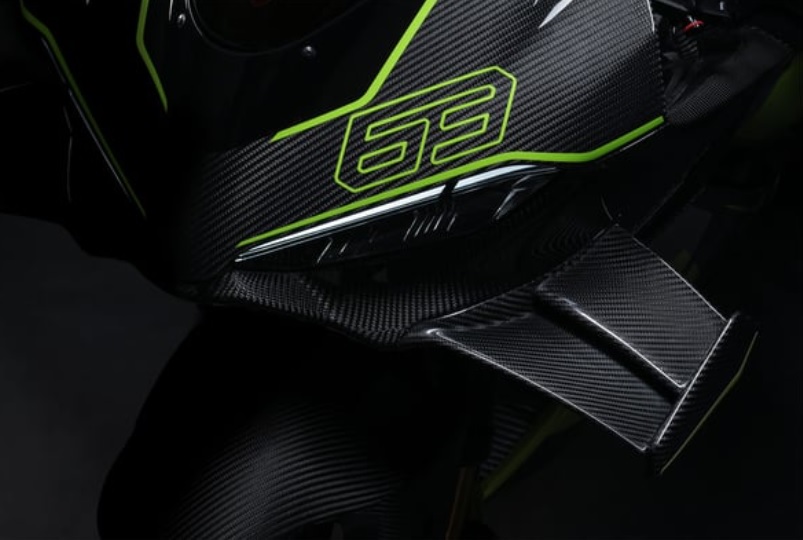 Panigale V4 Lamborghini не просто прилича на Lamborghini – той диша с неговия характер. Всеки детайл, всяка линия и дори текстурата на материалите са вдъхновени от суперкара Revuelto. Използваната Twill плетка във въглеродните влакна не само изглежда като излязла от научнофантастичен филм, но и гарантира здравина, лекота и визуален ефект, който не може да бъде сбъркан. Ливреята е изключително агресивна – черна база, върху която карбоновите елементи изграждат драматичен контраст. Всичко това е не просто за визия – това е за постигане на ефективна аеродинамика, охлаждане и оптична илюзия за скорост дори когато мотоциклетът стои неподвижно.