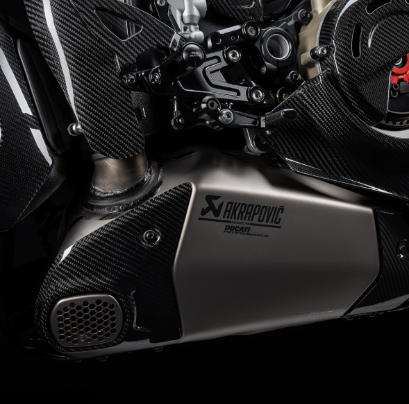 Panigale V4 Lamborghini не е създаден, за да се вози бавно по булевардите. Той е роден за пистата – за нейната прецизност, нейната агресия, нейното безпощадно изискване към машината и пилота. Затова всеки компонент тук е внимателно подбран и проектиран. Сухият съединител осигурява директна обратна връзка и по-добро охлаждане при продължителни сесии. Регулируемите спортни стъпенки позволяват адаптация към стила на всеки ездач. В допълнение, получавате и състезателен комплект за отстраняване на огледалата и задната регистрационна табела, за да може машината да бъде максимално олекотена и фокусирана върху едно – върхова производителност.