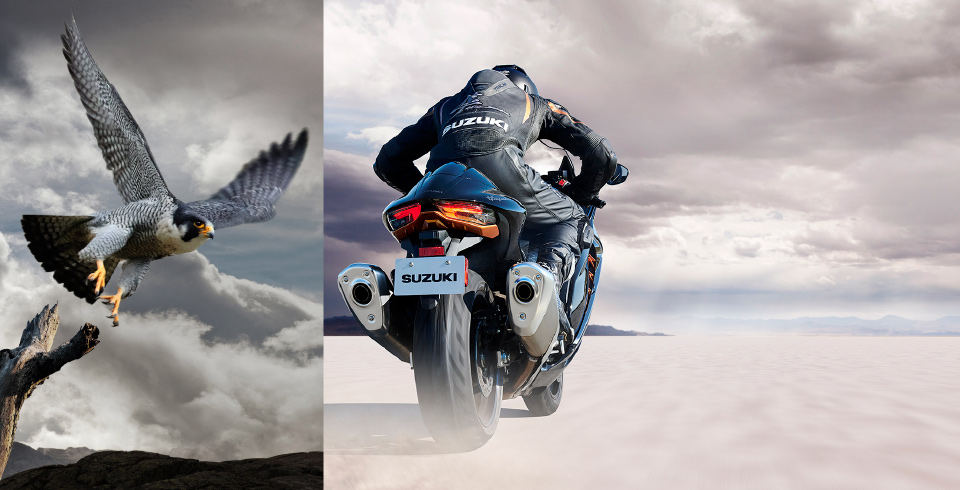 на Suzuki Hayabusa изобразява абстрахирана форма на сокол, който е символ на