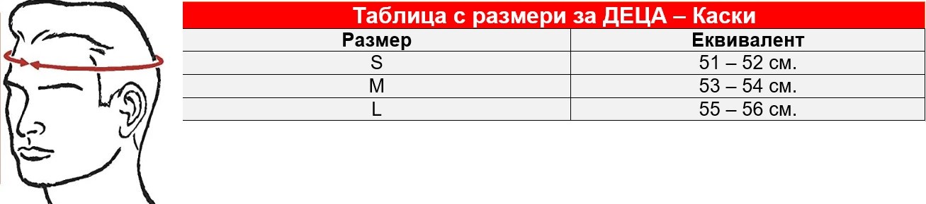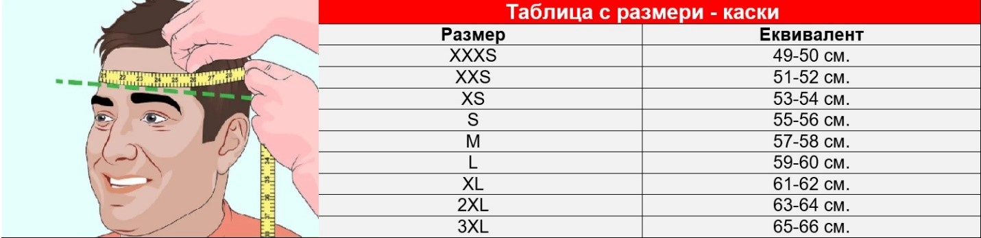 Изборът на правилен размер каска е изключително важен за вашата безопасност. Вижте таблицата по-долу, за да определите точния размер според обиколката на главата: