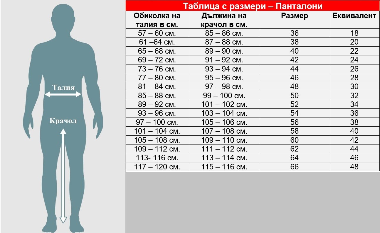 - Ханш – За панталоните измерете обиколката на ханша на най-широката част.